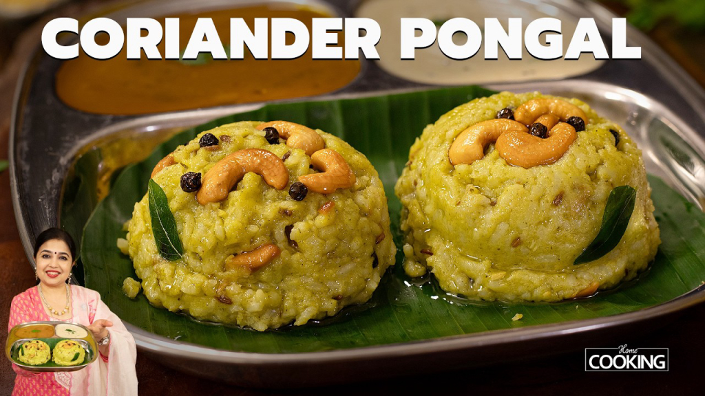 Serve the hot and delicious Coriander Pongal immediately with coconut chutney and sambar for a complete and satisfying meal.