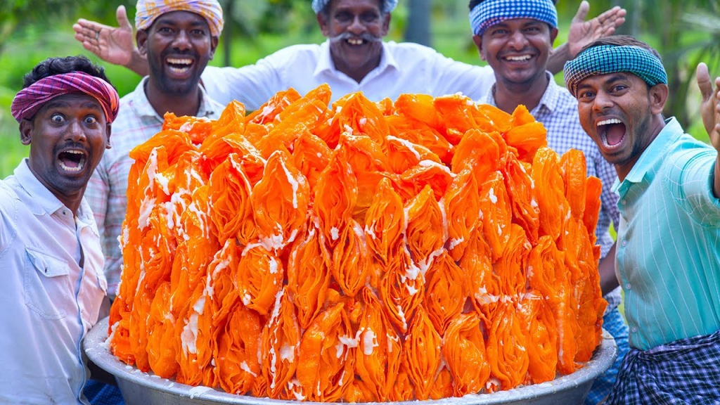 Place a large wok over a wood fire. Pour 5 liters of cold-pressed gingelly oil into the wok and heat it until it's hot enough for deep frying.