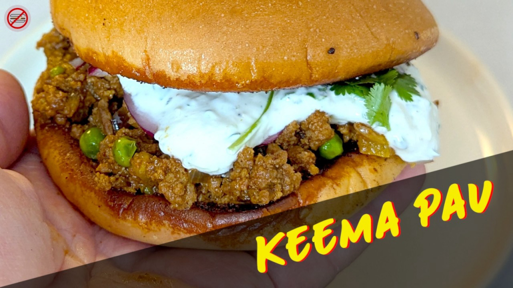 For a deconstructed version, place a toasted bun on a plate. Serve a portion of the keema filling alongside it. Place a small serving dish of pickled onions and another of raita next to the keema. Guests can then use the bun as a scoop or assemble their own.