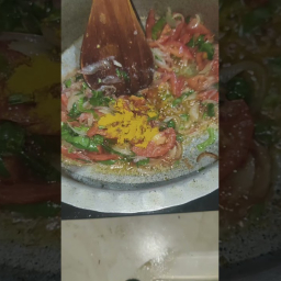 Add 50g of salt, 50g of red chili powder, and 30g of turmeric powder to the onion mixture. Mix well and cook for until the spices are fragrant and the oil starts to separate from the mixture. Reduce the heat and add 1.5 kg of whisked curd. Stir continuously to prevent curdling and cook until the gravy thickens and the oil separates again, about .