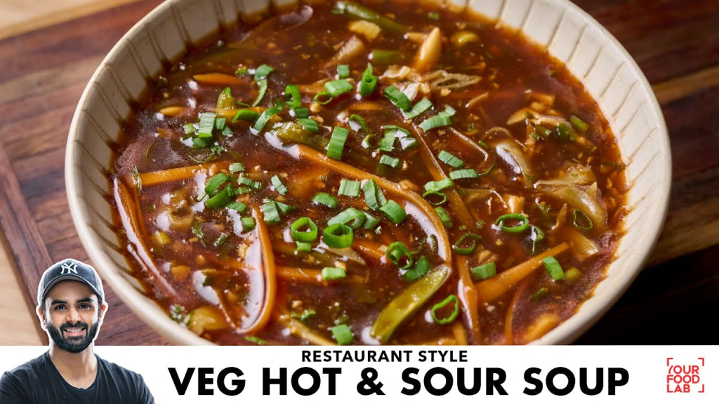 Pour in 800-900 ml of hot water or vegetable stock. Add the green chilli paste, a pinch of sugar, dark soy sauce, vinegar, red chilli sauce, white pepper powder, and salt to taste. Stir everything well and bring the soup to a rolling boil.