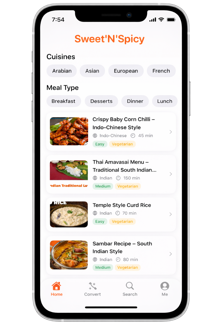 Filter by cuisine, meal type, or dietary preference. Discover recipes from around the world.